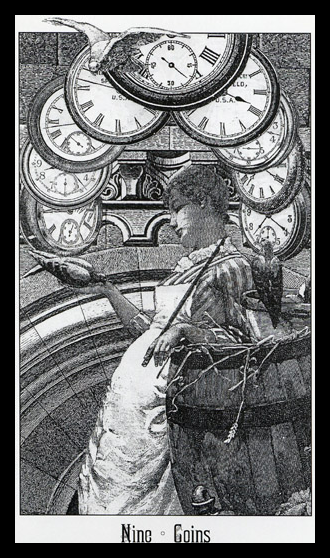 The 9 of Pentacles represents earned rest. The element Earth, attached to the Pentacles suit, appreciates the rest that completion of hard work brings. This is a good time for games and relaxation.