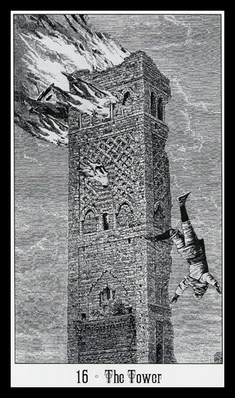 The card of The Tower goes by different names in different Tarot games. Some call it The Tower of Destruction, or The House of God, or Tower of the Light.