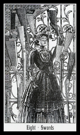 The 8 of Swords is about slowly regaining strength and energy. The 8 is an assignment number, and in the element of Swords it's a bit harder than usual.