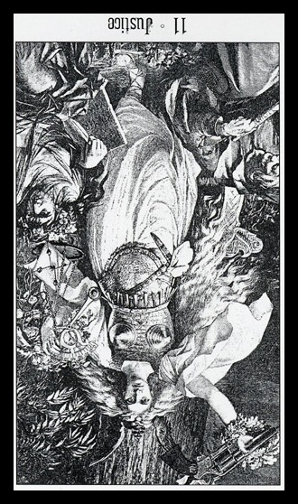 This card carries the number 11. In the Rider-Waite deck, Strength and Justice have swapped places because Waite saw links with the astrological signs Leo and Libra.