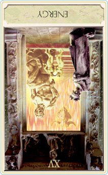 The number this card carries is 15, composed that is 6. The resemblances to the first '6' card (The Lovers) are remarkable; in both cards security is a central theme.