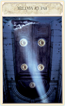 The 5 of Pentacles is an assignment-number card, and is about letting go of your securities. Pentacles element Earth (also) represents material posessions, so this card is about letting go of (some of) your worldly assets.