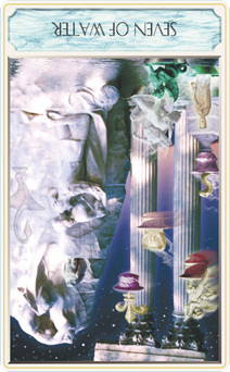 The 7 of Cups is about making a choice between different ideals. But Cups, with the water element, don't like making definitive choices that much, making this 7 in this suit a bit of a hard choice.