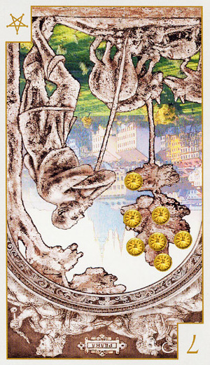 The 10 of Pentacles represents material posessions. The number 10 of Pentacles forms the links to the Ace (first card) of Wands (the first suit in the minor Arcana), and thus prepares to bring you back to the beginning of the minor Arcana, ready for a next cycle through the tarot.