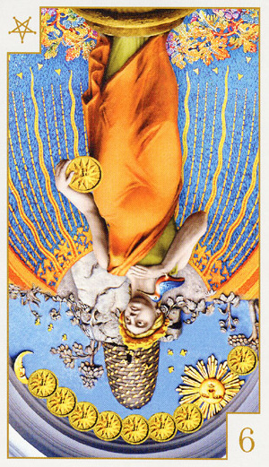 The 6 of Pentacles signals that help has arrived or will arrive soon. The number 6 represents security and reward. In the Earth element attached to Pentacles, this means material rewards are likely coming your way.