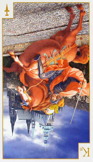 The Knight of Swords lacks the naivety of the Knight of Wands, he has analyzed the terrain ahead and weighed his options there. He knows what his own nature can throw into the mix, but does not let himself be held idle by that. The activities ahead will likely include the solving of conflicts and problems on your road to your ideal.