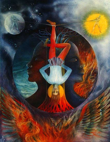 In the Edda is described how Odin hung himself upside down from the Yggdrasil, the tree of transformation, for nine days and nights, to better understand the runes.