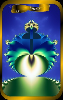 This card carries the number 11. In the Rider-Waite deck, Strength and Justice have swapped places because Waite saw links with the astrological signs Leo and Libra.