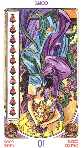 The 10 of Cups is the link to the Swords suit. It is time to leave your own emotions behind and face the world and the tasks ahead.