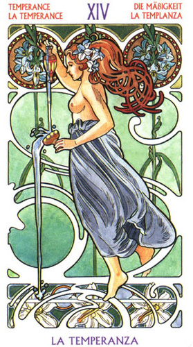 With Death, an important decision made with The Hanged Man was given shape by letting go of the old. Now you're in a transitionary period and this Temperance card is a place of rest during the journey through the underworld.
