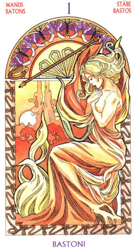 The ace of wands represents the beginning of an idea. The element fire and the number 1 give a powerful combination: enterprise and new beginnings apply to both. This is an energetic combination, which is why the card is generally considered a positive one. Spring is the season associated with this card.