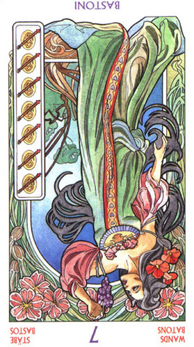 With the 7 of Wands, the striving cycle starts. It is about having the determination to complete your ideas, despite the fact that that might cause you some discomfort.