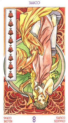 8 is an assignment number, and in the suit of Cups, it is about overcoming the urge to sink into depression caused by view on the long road ahead.