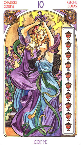 The 10 of Cups is the link to the Swords suit. It is time to leave your own emotions behind and face the world and the tasks ahead.