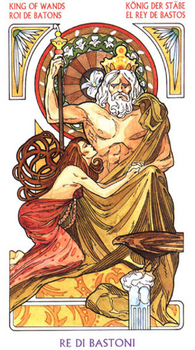 The King of Wands uses the properties of Wands (vitality, optimism, enthousiasm) to go out with confidence. He is seen as a leader with charisma.