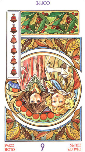 The 6 of Cups is about having confidence in something. It is the number of security and harmony. In the suit of Cups this means to be in harmony with yourself.
