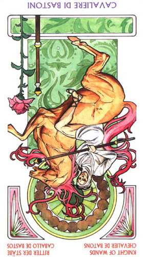 The Knight of Wands likes action and progress, but isn't too concerned with the usefulness of his actions or the ramifications to those around him.