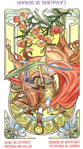 The Knight of Pentacles doesn't like to get worked up about anything. He prefers to make quiet steady progress by sticking to a persevering attitude, while not allowing himself to become exhausted or stressed.