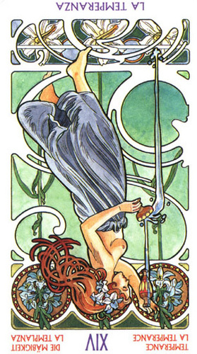 With Death, an important decision made with The Hanged Man was given shape by letting go of the old. Now you're in a transitionary period and this Temperance card is a place of rest during the journey through the underworld.