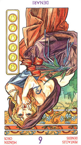 The 9 of Pentacles represents earned rest. The element Earth, attached to the Pentacles suit, appreciates the rest that completion of hard work brings. This is a good time for games and relaxation.