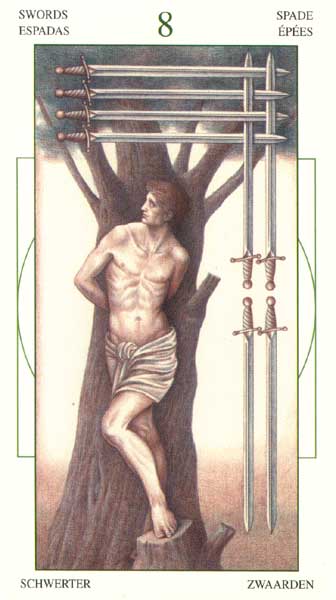 The 8 of Swords is about slowly regaining strength and energy. The 8 is an assignment number, and in the element of Swords it's a bit harder than usual.