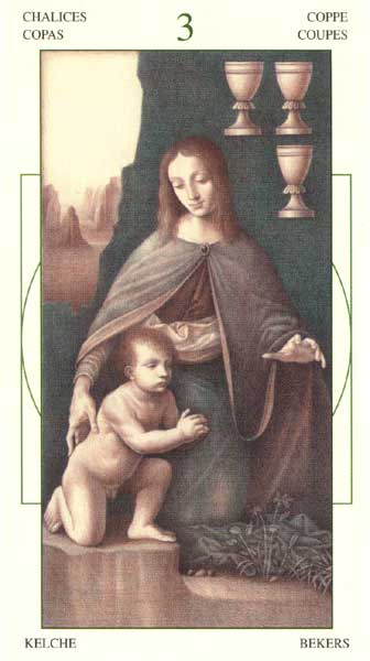 The 3 of Cups represents hope, faith and love. The 3 is a reward number and in this suit of Cups your feelings during that number will be that of joy and self-contentment.
