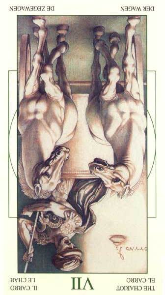 During the prevous card, The Lovers, all the wisdom of the first cards in the deck has been processed and a choice was made for personal growth. Now it's time to do something with all this baggage, to actually travel the road. A lot has been done so far, wisdoms have been accumulated and integrated into one's personality.