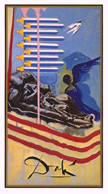 The 9 of Swords represents relief from cropped-up grief. The number 9 is a number of reward and rest and accomplishment. In the element of Swords there is not a lot of time for rest, but without any rest you'd just burn yourself out.