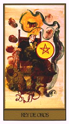 The King of Pentacles uses his Earthly attributes to rule. He goes about his work like an old style business man; he avoids unnecessary risks, aims for real results, and acts from confidence.