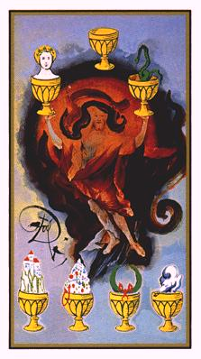 The 7 of Cups is about making a choice between different ideals. But Cups, with the water element, don't like making definitive choices that much, making this 7 in this suit a bit of a hard choice.