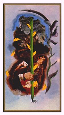 The number 1, associated with this Ace card, is the number of a fresh start with yet more new impulses coming your way. It might be compared to The Fool, the first card of the major arcana.