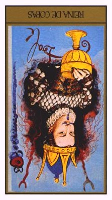 Queens and Cups are both somewhat turned inward. This might make whatever choice you're facing when this card falls, a deep one. Take your time, and don't let the issue overwhelm you or your emotions.