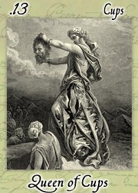 Queens and Cups are both somewhat turned inward. This might make whatever choice you're facing when this card falls, a deep one. Take your time, and don't let the issue overwhelm you or your emotions.