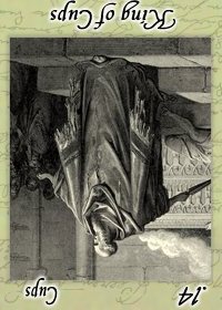 The King of Cups uses his intuition to achieve his ideals. Since Cups are turned inward, and Kings turned to the outside world, this card might be a difficult one, or it could be a powerful one.