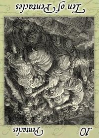 The 10 of Pentacles represents material posessions. The number 10 of Pentacles forms the links to the Ace (first card) of Wands (the first suit in the minor Arcana), and thus prepares to bring you back to the beginning of the minor Arcana, ready for a next cycle through the tarot.