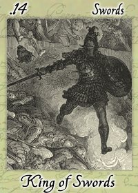 The King of Swords rules with diplomacy and a strong sense of responsibility, not just for himself but also for those around him, yet he is not afraid to make heavy decisions that compel him to eliminate dangers and dangerous opponents with some force.