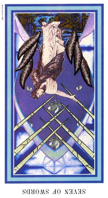 The 7 of Swords is about making slow progress because you can't trust the situation and/or people around you.