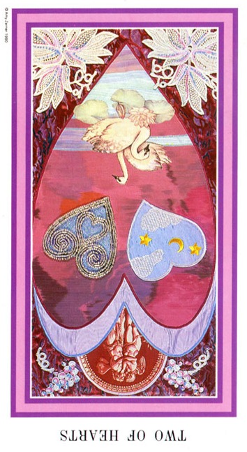 This the first assignment number of the Cups suit. Unlike Wands, with the Fire element, Cups, with the water element, has a lot more patience. Water is by nature more introspective, and this second card in the Cups suit is indeed about exploring yourself. The outcome is uncertain as always, but it usually results in better acceptance of yourself.