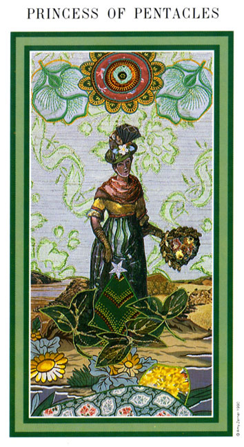 Pages explore and gather information about the road ahead, with an almost naive attitude. The Page of Pentacles is sometimes described as a bridge builder; Pentacles is the suit where the actual work is done, and the Page here enables those that follow to quickly cross difficult terrain.