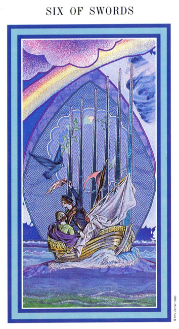 The 6 of Swords is a reward number after the hard assignment in 5 of Swords, it brings you to a safe place to rest a bit.