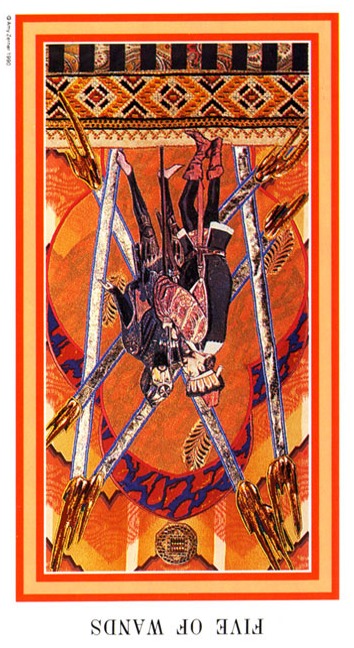The 5 of Wands represents competition. The 5 is the second assignment number, and therefore a difficult card. 5 combined with the Wand's element fire challenges you. You'll have to fight hard for your idea, but you stand a good chance of succeeding.