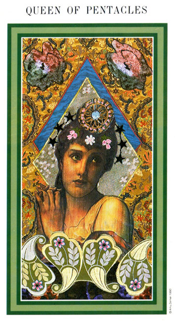 The Queen in the suit of Pentacles becomes aware of her Earthly attributes; she's reliable and sober, able to give good advice.