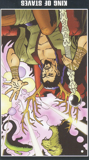 The King of Wands uses the properties of Wands (vitality, optimism, enthousiasm) to go out with confidence. He is seen as a leader with charisma.
