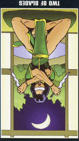 The 2 is an assignment number in tarot, and in this case of the 2 of Swords, it's about being forced to wait for something, often even while blindfolded in some sense.