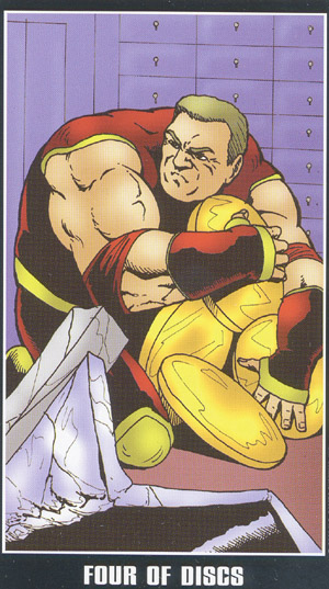 The 4 of Pentacles is about holding on to what you got. The number 4 represents structure and order, and fits well with the suit's element, Earth.