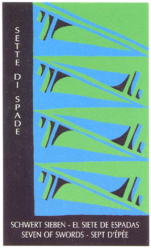The 7 of Swords is about making slow progress because you can't trust the situation and/or people around you.