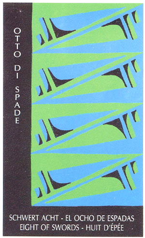 The 8 of Swords is about slowly regaining strength and energy. The 8 is an assignment number, and in the element of Swords it's a bit harder than usual.