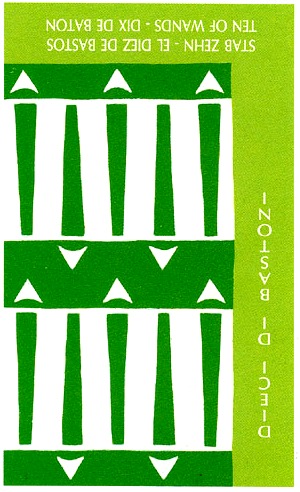 The 10 of Wands is therefore the transition from the element Fire (associated with Wands) to the element Water, associated with Cups. As you might imagine, this not the easiest of transitions.