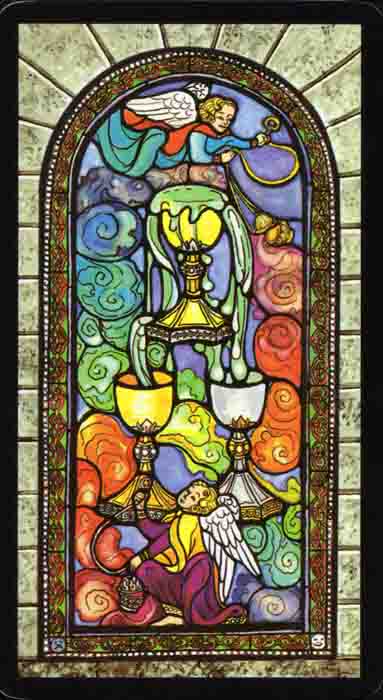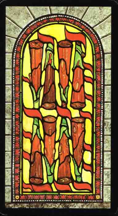 The 10 of Wands is therefore the transition from the element Fire (associated with Wands) to the element Water, associated with Cups. As you might imagine, this not the easiest of transitions.