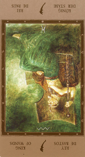 The King of Wands uses the properties of Wands (vitality, optimism, enthousiasm) to go out with confidence. He is seen as a leader with charisma.